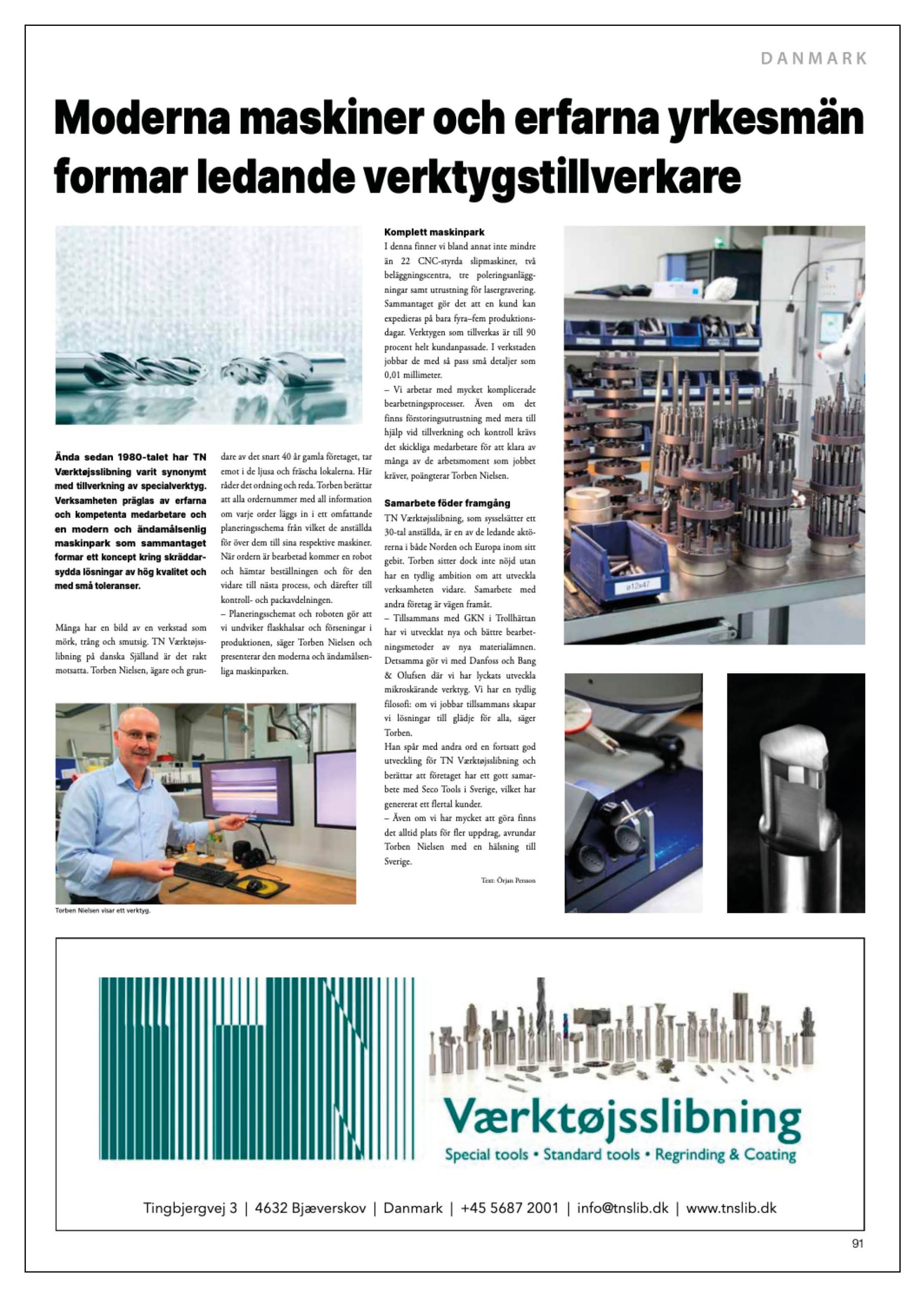 Derudover bliver den CNC styrede maskinpark konstant udvidet og opdateret. Dette gør TN Tools blandt de førende inden for skæreteknisk udvikling og teknologi. Og betyder samtidig at TN Tools kan levere den højeste kvalitet i moderne omgivelser.